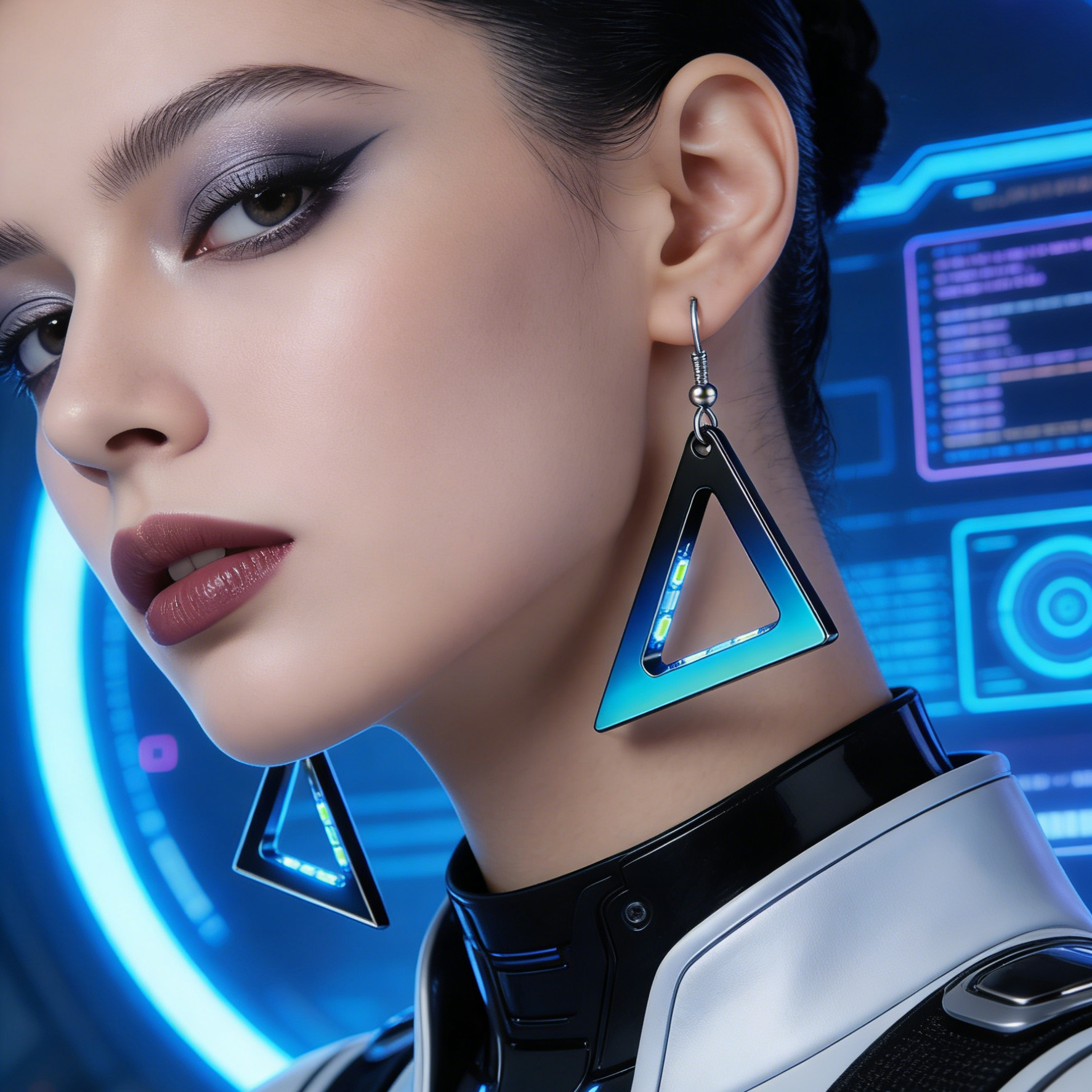 Cyberpunk Hollow Triangle Drop Earrings – Futuristic Blue Gradient Geometric Jewelry