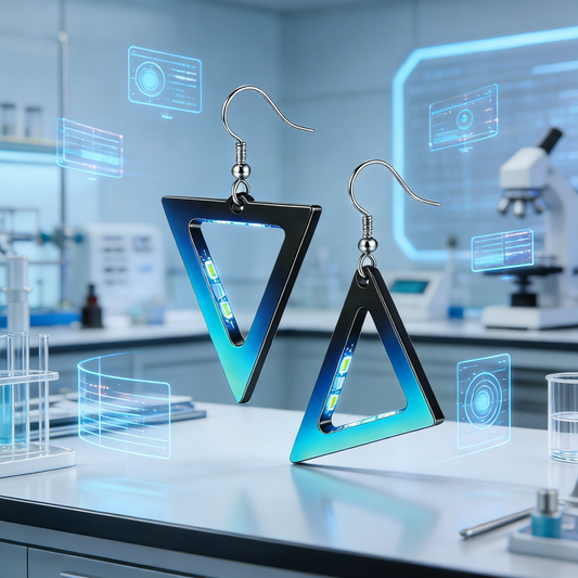 Cyberpunk Hollow Triangle Drop Earrings – Futuristic Blue Gradient Geometric Jewelry