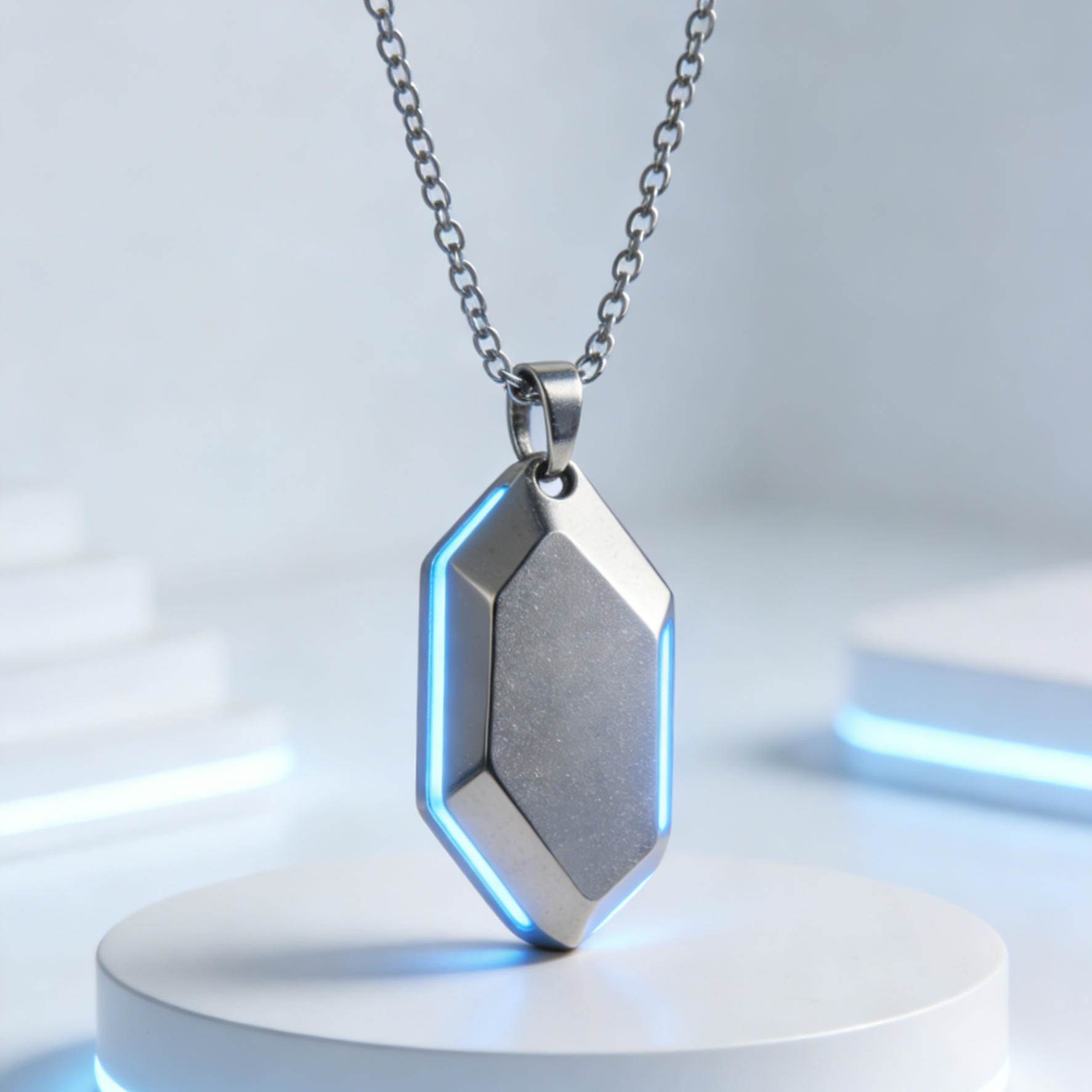 - Style: Pendant necklace, cyberpunk, futuristic, tech-inspired
